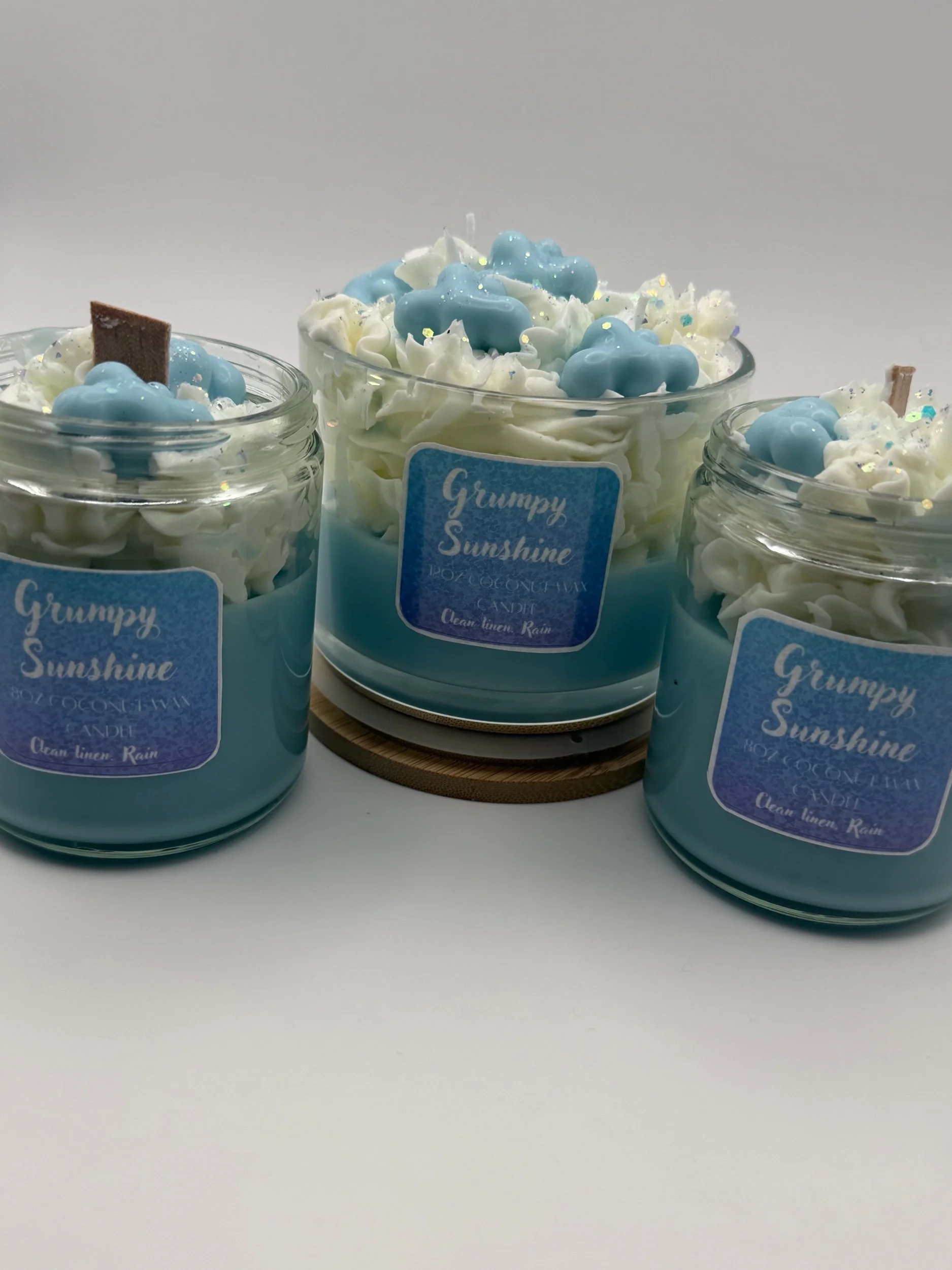 Shop › Grumpy Sunshine Coconut wax candle Image 1 of 4 Image 2 of 4 Image 3 of 4 Image 4 of 4 Grumpy Sunshine Coconut wax candle from US$13.00 Scented in clean linen and rain Size: Select Size 8oz 12oz Add To Cart Added! Scented in clean linen and rain